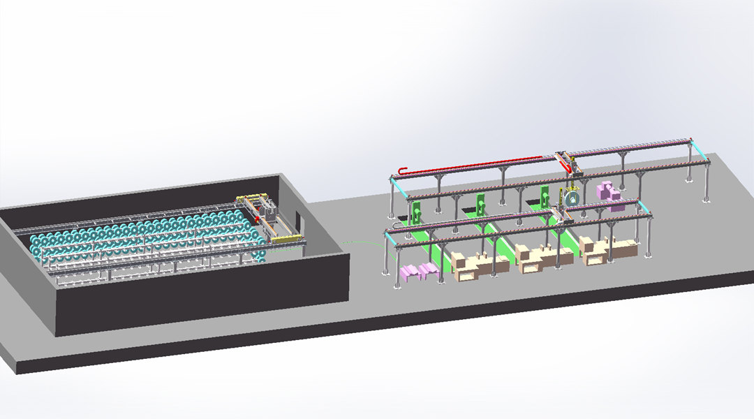 3.WCS控制系统根据出库单,调动智能天车,将货物搬运输送至出库口;