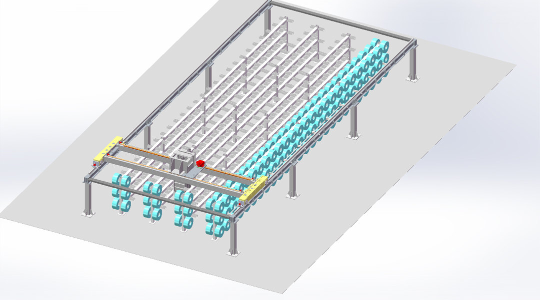 4.智能天车根据指令将钢卷放置在AGV工装上;